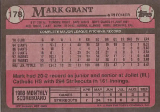 1989 Topps #178 Mark Grant NM-MT San Diego Padres Baseball Card