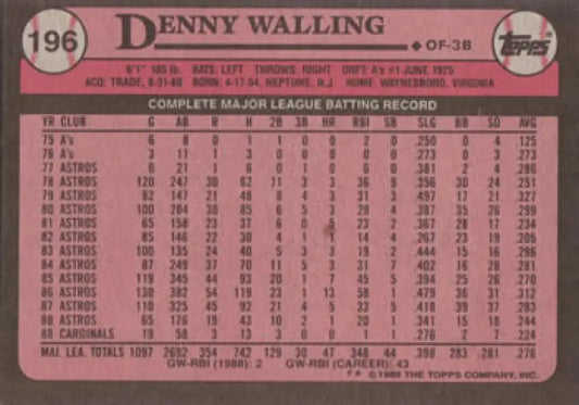 1989 Topps #196 Denny Walling NM-MT St. Louis Cardinals Baseball Card