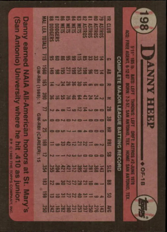 1989 Topps #198 Danny Heep NM-MT Los Angeles Dodgers Baseball Card