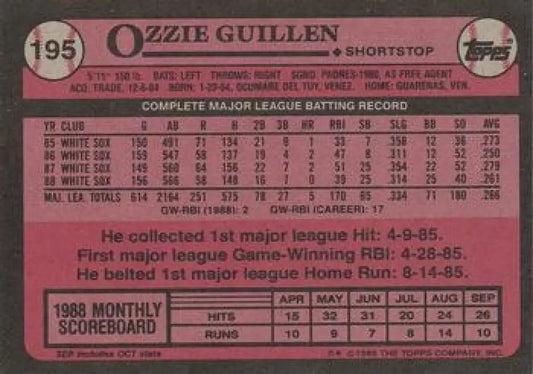 1989 Topps #195 Ozzie Guillen NM-MT Chicago White Sox Baseball Card