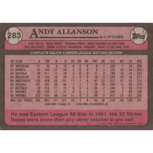 1989 Topps #283 Andy Allanson NM-MT Cleveland Indians Baseball Card