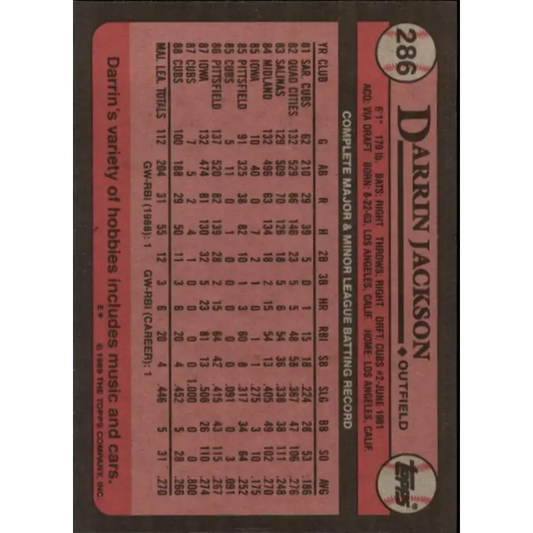 1989 Topps #286 Darrin Jackson NM-MT Chicago Cubs Baseball Card