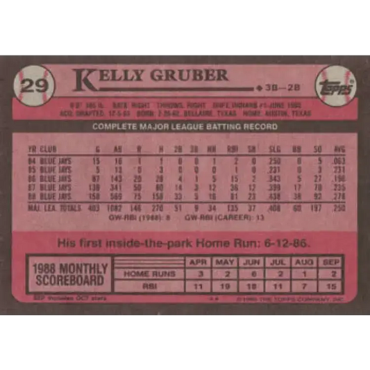 1989 Topps #29 Kelly Gruber NM-MT Toronto Blue Jays Baseball Card