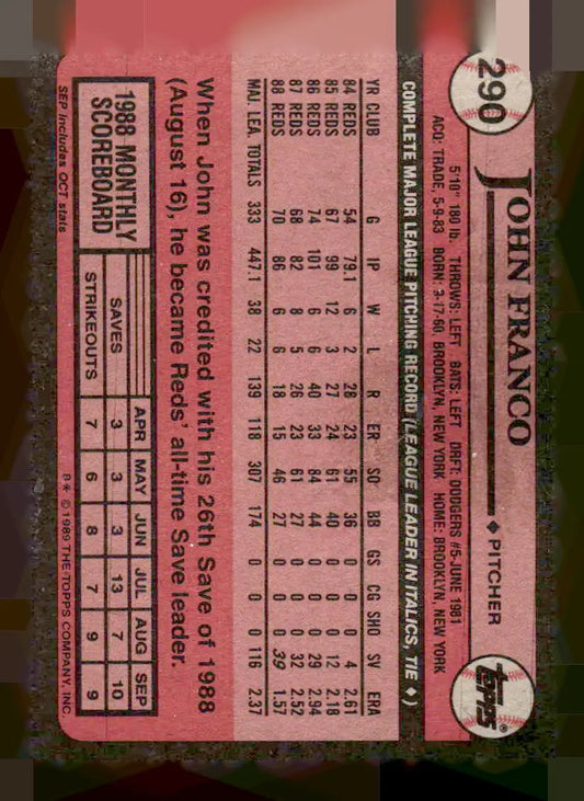 1989 Topps #290 John Franco NM-MT Cincinnati Reds Baseball Card