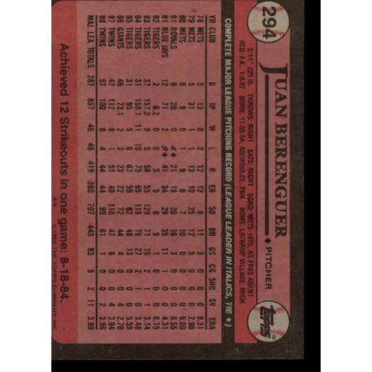 1989 Topps #294 Juan Berenguer NM-MT Minnesota Twins Baseball Card