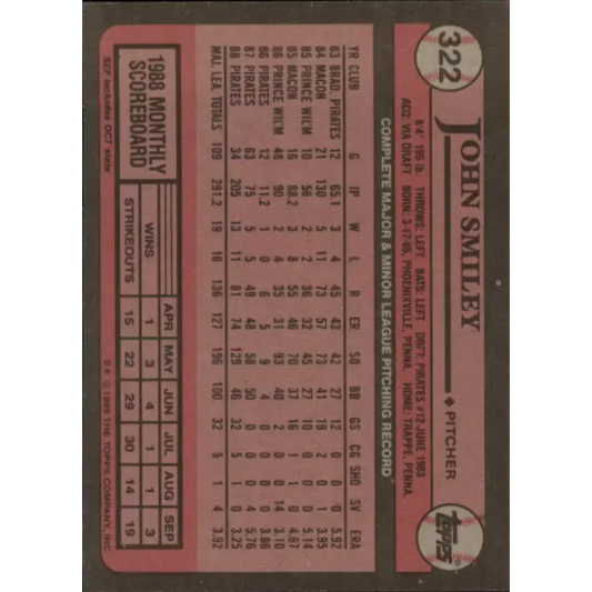 1989 Topps #322 John Smiley NM-MT Pittsburgh Pirates Baseball Card