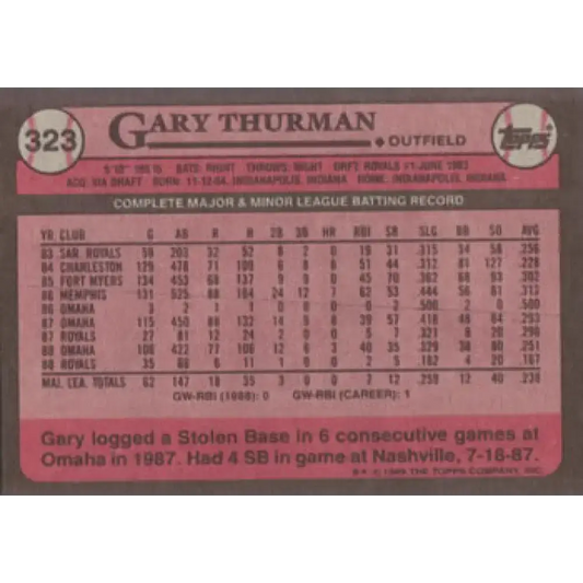 1989 Topps #323 Gary Thurman NM-MT Kansas City Royals Baseball Card