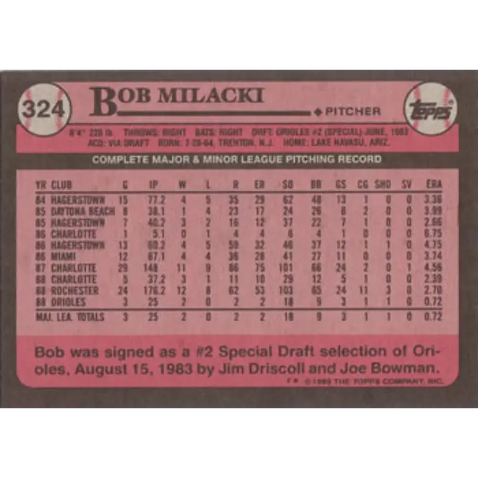 1989 Topps #324 Bob Milacki NM Near Mint RC Rookie Orioles ID:45930