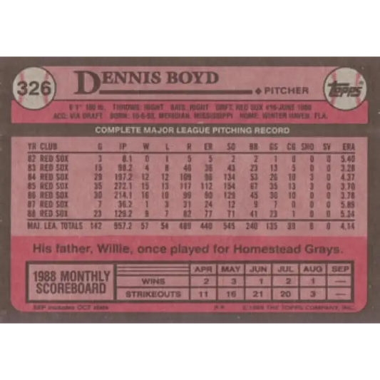 1989 Topps #326 Dennis Boyd Boston Red Sox Baseball Cards NM Near Mi ID:64652