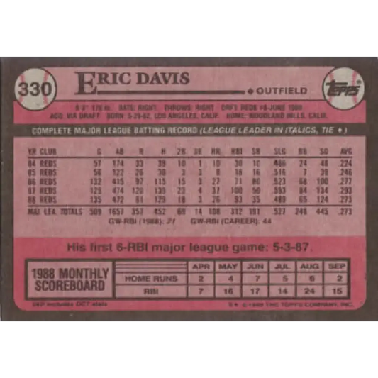 1989 Topps #330 Eric Davis NM-MT Cincinnati Reds Baseball Card