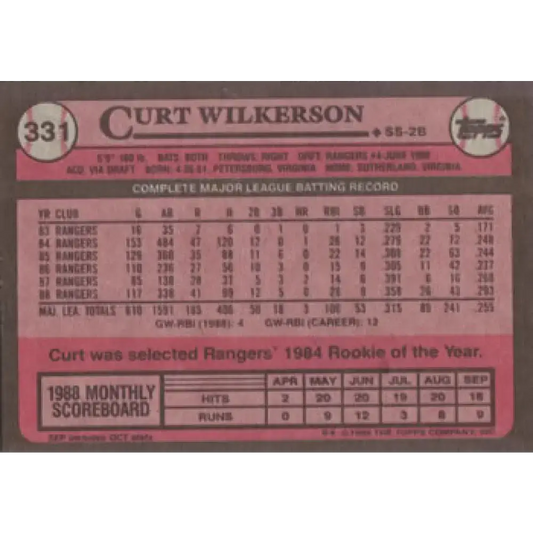 1989 Topps #331 Curtis Wilkerson NM-MT Texas Rangers Baseball Card