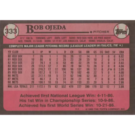 1989 Topps #333 Bob Ojeda NM-MT New York Mets Baseball Card