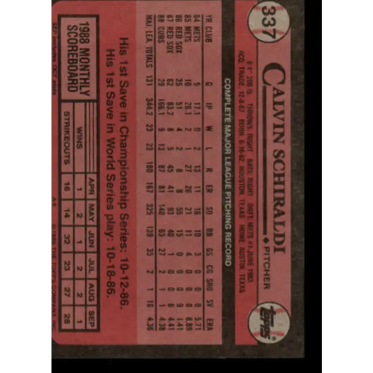 1989 Topps #337 Calvin Schiraldi NM-MT Chicago Cubs Baseball Card