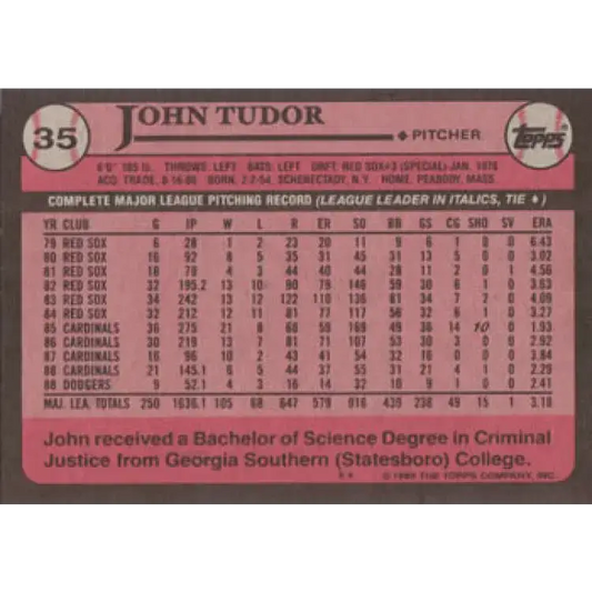 1989 Topps #35 John Tudor UER NM-MT Los Angeles Dodgers Baseball Card