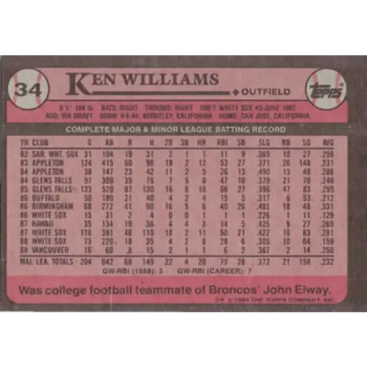 1989 Topps #34 Kenny Williams NM-MT Chicago White Sox Baseball Card