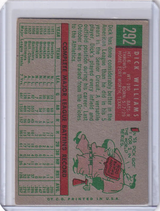 1959 Topps Baseball #292 Dick Williams - Kansas City Athletics