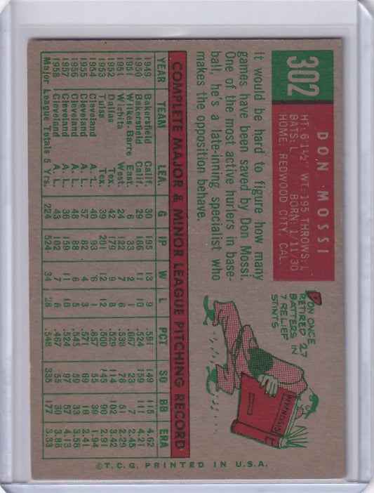 1959 Topps Baseball #302 Don Mossi UER - Detroit Tigers