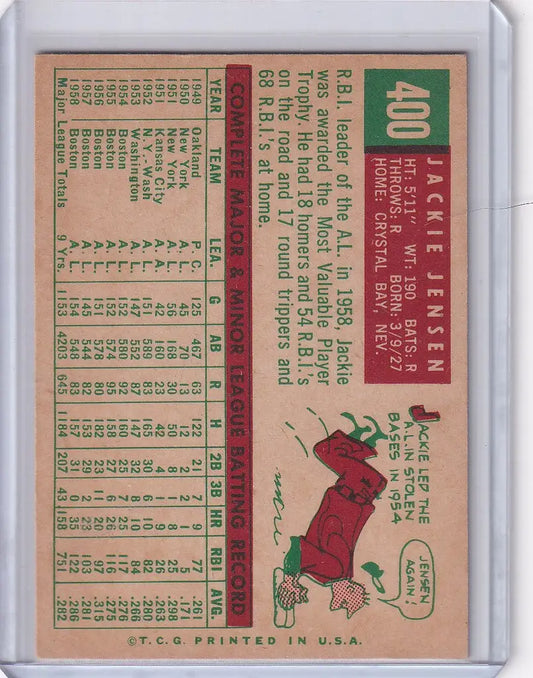 1959 Topps Baseball #400 Jackie Jensen - Boston Red Sox
