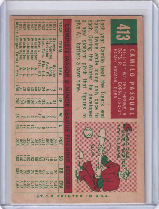 1959 Topps Baseball #413 Camilo Pascual - Washington Senators