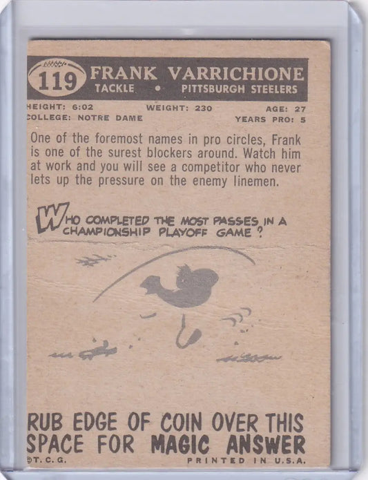 1959 Topps Football # 119 Frank Varrichione - Pittsburgh Steelers