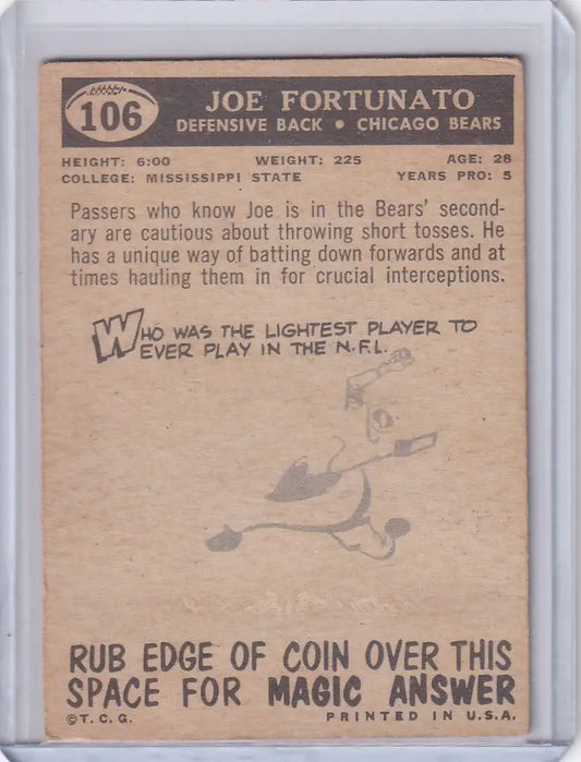 1959 Topps Football # 106 Joe Fortunato RC - Chicago Bears