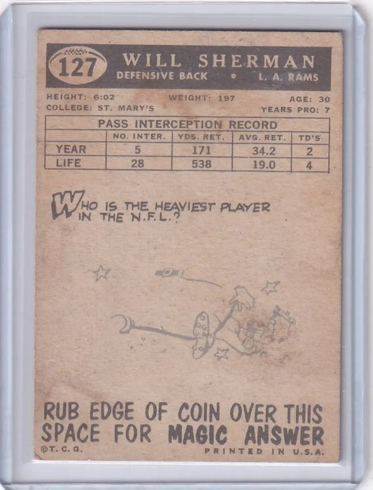 1959 Topps Football # 127 Will Sherman - Los Angeles Rams