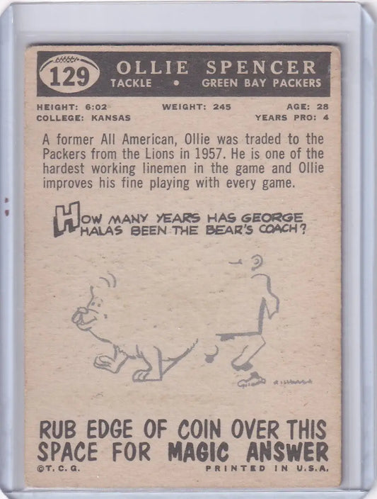 1959 Topps Football # 129 Ollie Spencer RC - Green Bay Packers