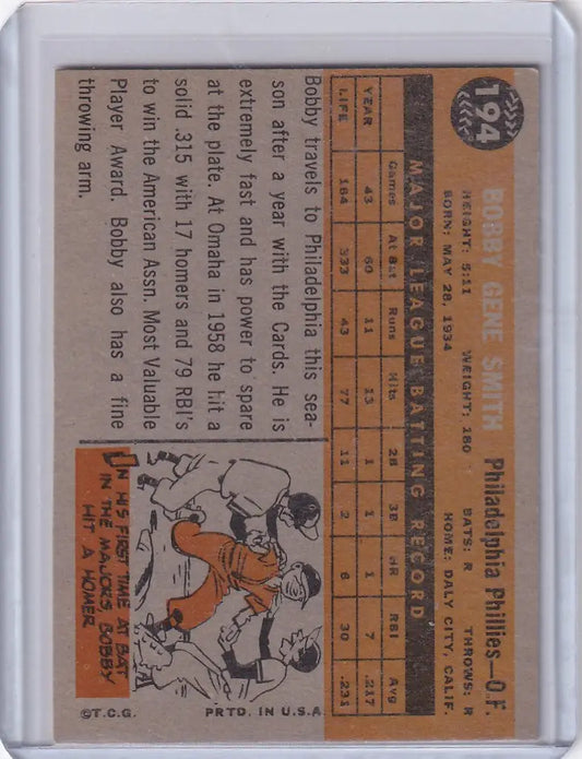 1960 Topps #194 Bobby Gene Smith - Philadelphia Phillies