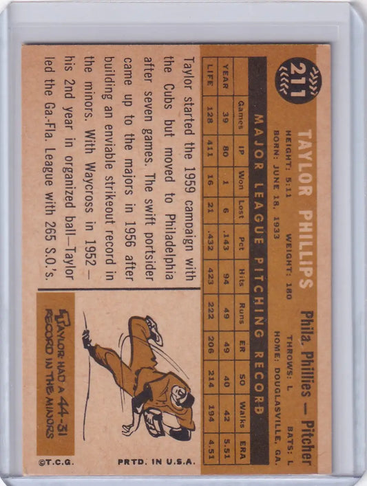 1960 Topps #211 Taylor Phillips - Philadelphia Phillies