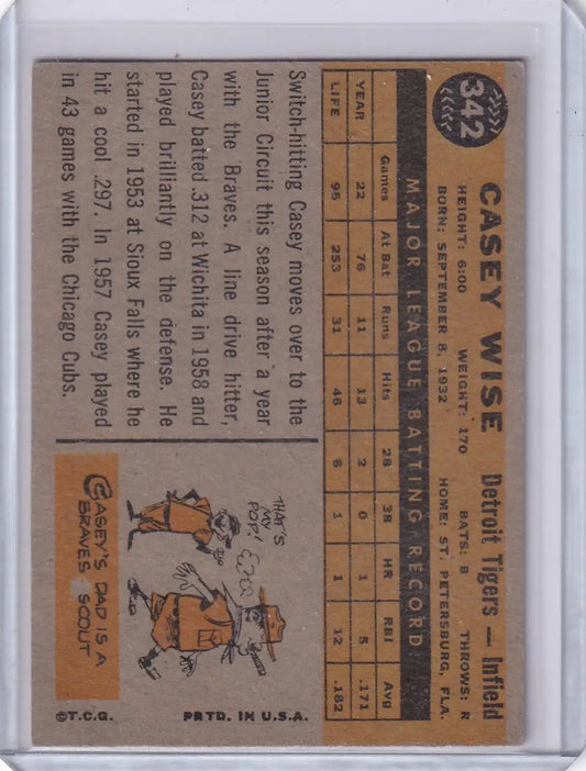 1960 Topps #342 Casey Wise - Detroit Tigers