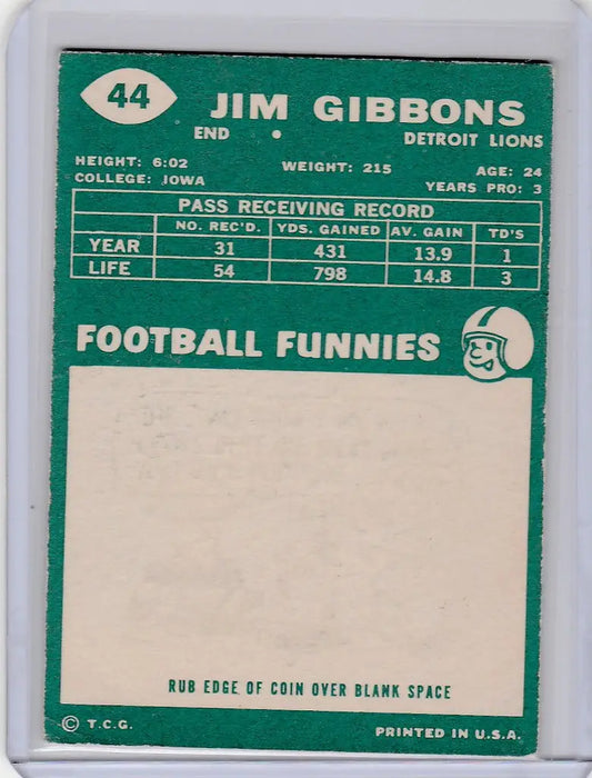 1960 Topps #44 Jim Gibbons Detroit Lions EXMT