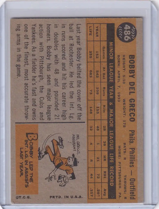 1960 Topps #486 Bobby Del Greco - Philadelphia Phillies