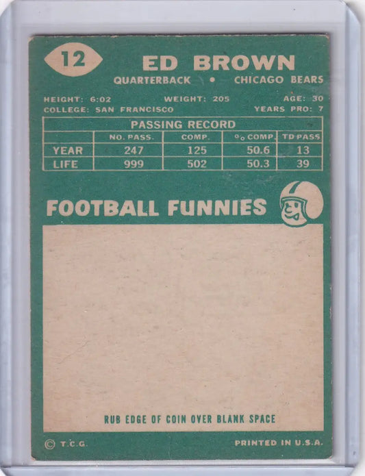 1960 Topps Football # 12 Ed Brown - Chicago Bears