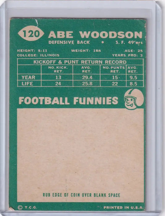 1960 Topps Football # 120 Abe Woodson - San Francisco 49ers