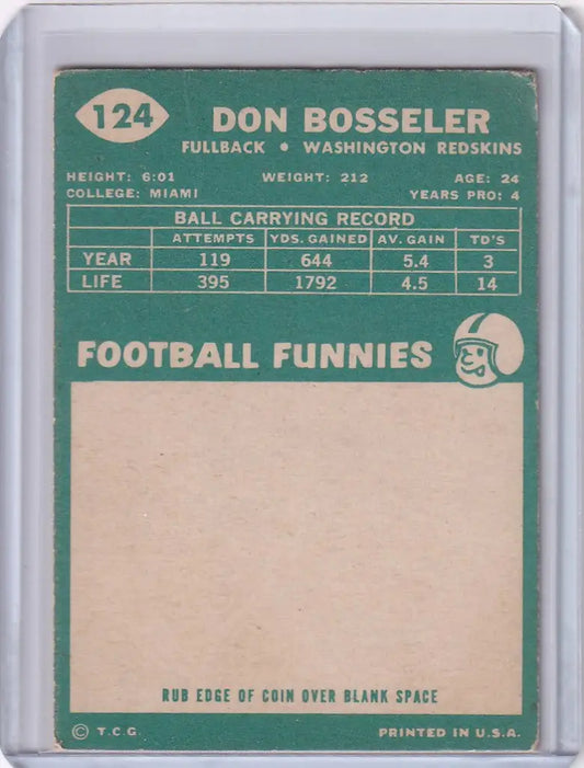 1960 Topps Football # 124 Don Bosseler - Washington Redskins