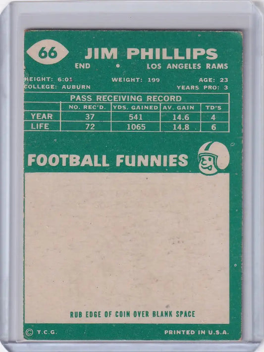 1960 Topps Football # 66 Jim Phillips - Los Angeles Rams