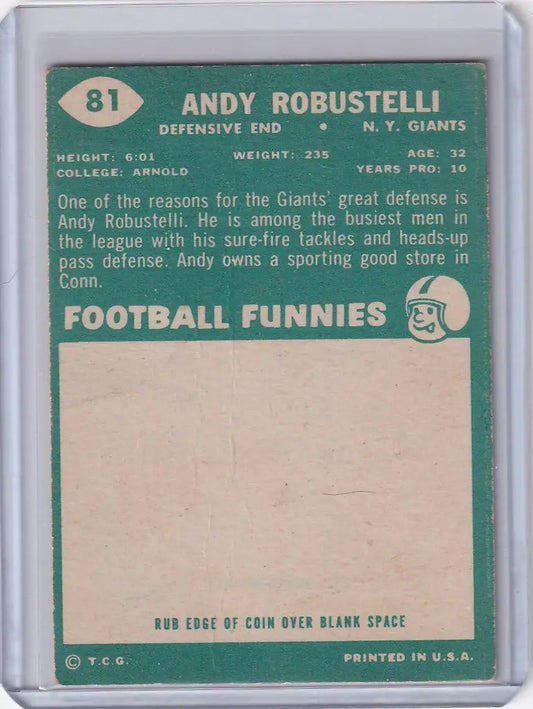 1960 Topps Football # 81 Andy Robustelli - New York Giants