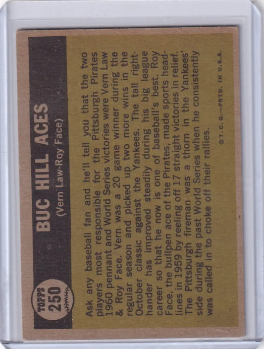 1961 Topps #250 Buc Hill Aces - Vern Law / Roy Face