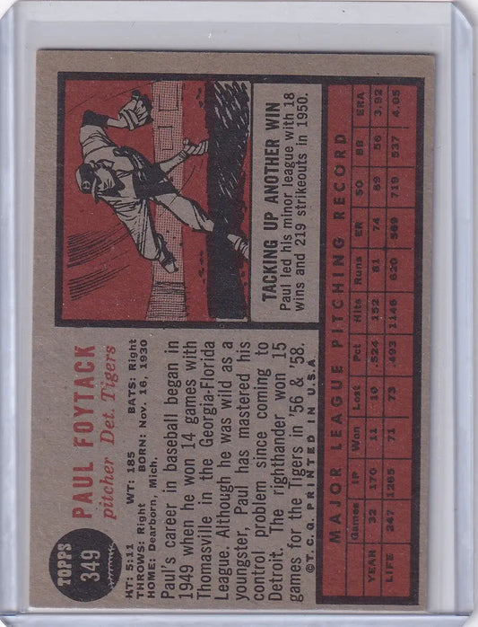 1962 Topps #349 Paul Foytack - Detroit Tigers