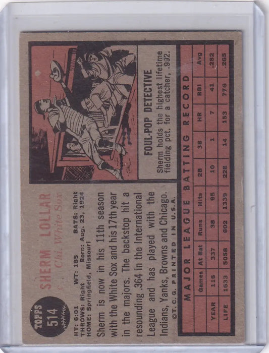 1962 Topps #514 Sherm Lollar - Chicago White Sox