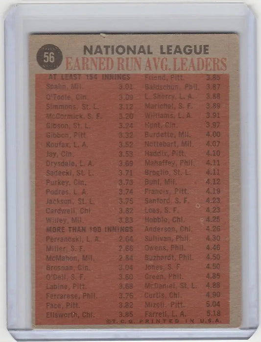 1962 Topps #56 1961 NL ERA Leaders Spahn/Otoole/Simmons/McCormick