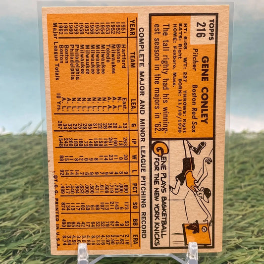 1963 Topps #216 Gene Conley baseball card Boston Red Sox EX