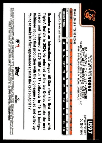 2025 Topps Update #US97 Brandon Young NM-MT RC Rookie Orioles ID:80017