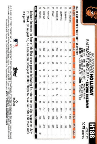 2025 Topps Holiday #H188 Jackson Holliday NM-MT Orioles ID:79988
