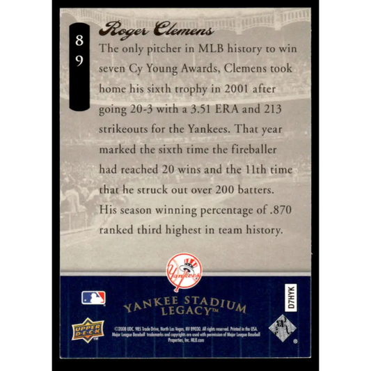 2008 Upper Deck Yankee Stadium Final Season Box Set #89 Roger Clemens Yankees Baseball Card