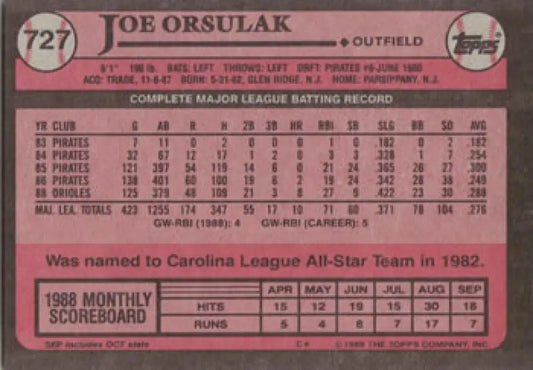 1989 Topps #727 Joe Orsulak NM-MT Baltimore Orioles Baseball Card
