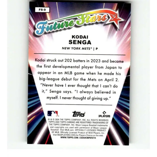 2024 Topps Chrome Future Stars Refractor #FS-9 Kodai Senga NM-MT New York Mets Baseball Card