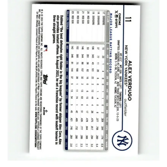 2024 Topps Chrome Refractor Prism #11 Alex Verdugo NM-MT New York Yankees Baseball Card
