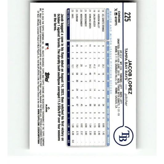 2024 Topps Chrome Refractor Prism #225 Jacob Lopez NM-MT RC Rookie Tampa Bay Rays Baseball Card