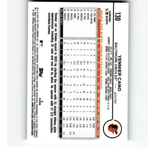 2024 Topps Chrome Refractor Sepia #130 Yennier Cano NM-MT Baltimore Orioles Baseball Card